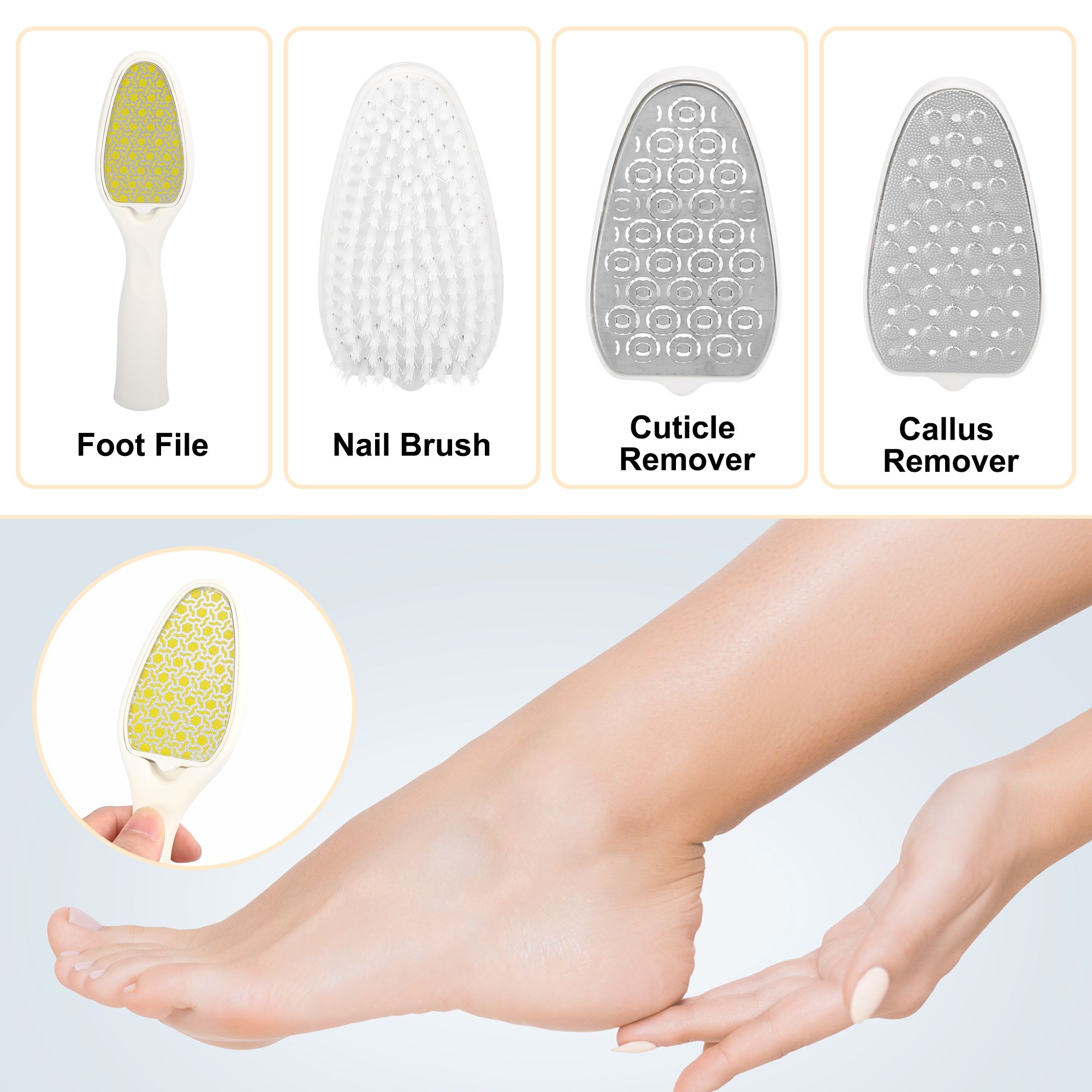 vocoste White Foot Nail Files Tools Set Hard Dead Skin with Nail Brush Portable Foot Care Tool Set