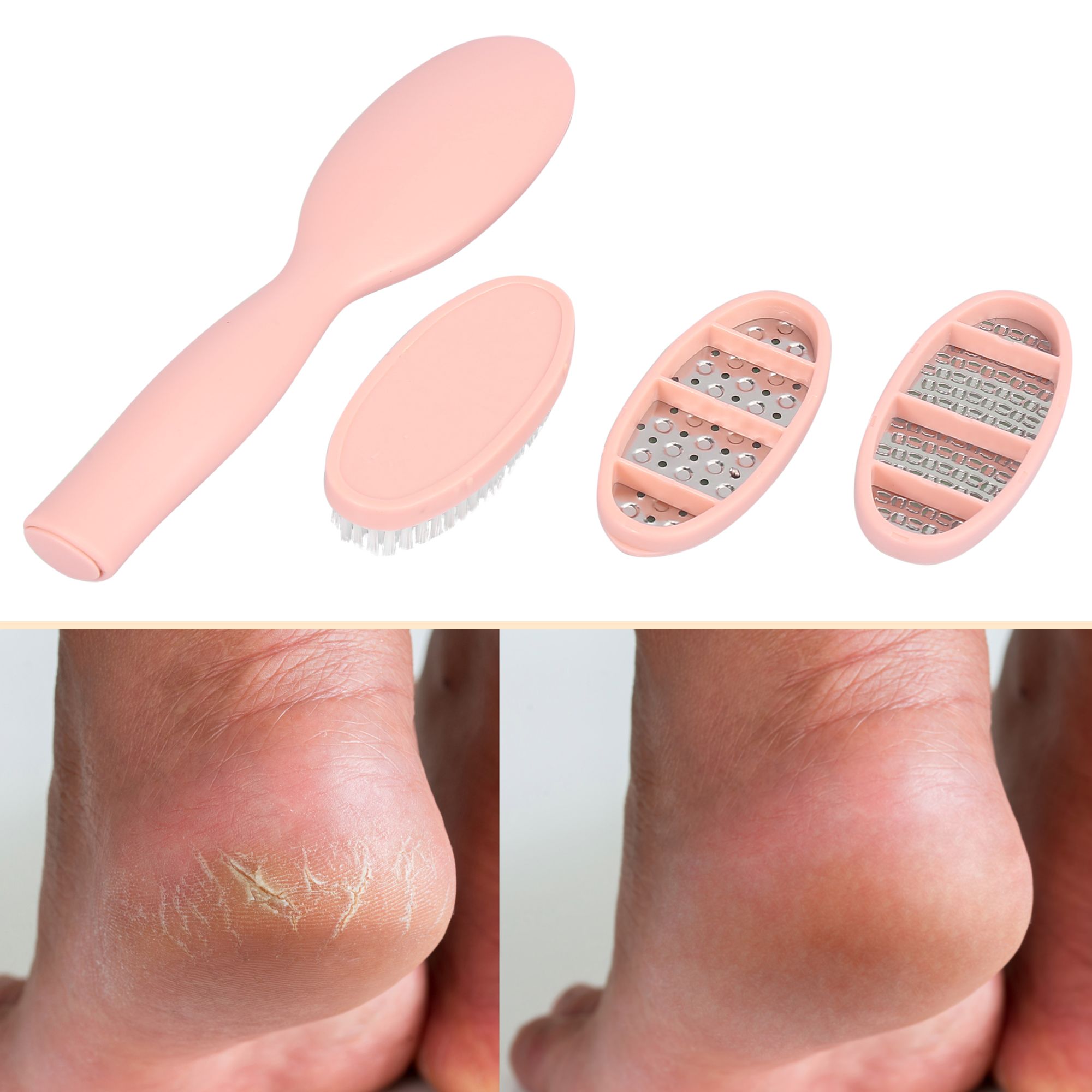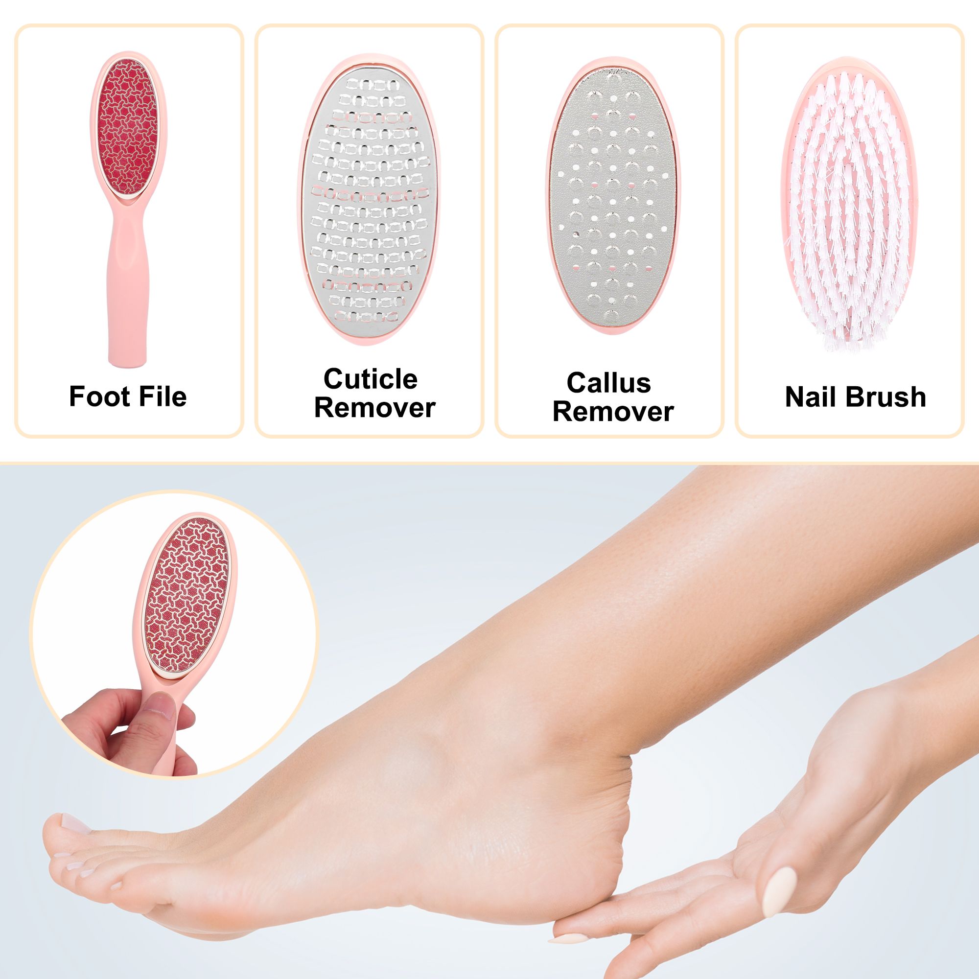 vocoste Pink Foot Nail Files Tools Set Hard Dead Skin with Nail Brush Portable Foot Care Tool Set